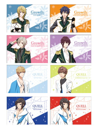 他にも、かわいいハート型缶バッジセット(10ポイント)やブロマイド収納ファイル(8ポイント)、ユニットごとのビジュアルを使用したクリア下敷き(5ポイント)のほか、1ポイントでもらうことができる特典にはキャラクターからのメールが届くイラストカードも用意されている。