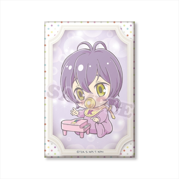 思い出のフォトスタンド風デザインの長方形型缶バッジ。バッグに付けて持ち歩くことはもちろん、部屋に飾って楽しむこともできる。デザインはフォトスタンド風となっているが、実際にスタンドは付属していない。