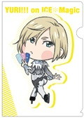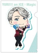 限定MagicコラボイラストのA5サイズのクリアファイル。“勇利”、“ヴィクトル”、“ユーリ”の3種類の中から好きなクリアファイルが1枚もらえる。