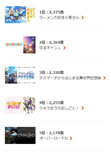 2018冬アニメ『何見てる?』ランキング発表!