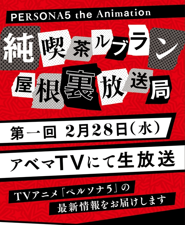 4月より放送開始予定のTVアニメ『ペルソナ5』のAbemaTVレギュラー番組“PERSONA5 the Animation 純喫茶ルブラン屋根裏放送局”の初回放送が、2月28日(水)21:30~に決定した。