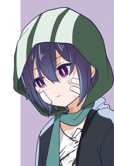 フードをかぶり、捜索のちらしを配っている少年。行方不明のしおを探している。