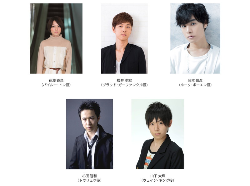 メインキャストは、花澤香菜(バイルー・トン役)さん、櫻井孝宏さん(ヴラッド・ガーファンクル役)、岡本信彦さん(ルーク・ボーエン役)、杉田智和さん(トウリュウ役)、山下大輝さん(ウェイン・キング役)。