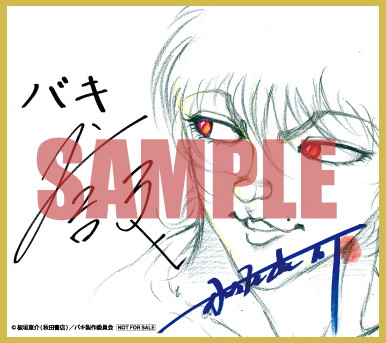 6月30日に、TOHOシネマズ六本木ヒルズにて開催が決定している“TVアニメ『バキ』放送記念・MX4Dバッキバキ体感上映会”にて、豪華来場者特典の配布が決定。原作者・板垣恵介さんのイラストとサイン、そして、刃牙役を演じる島﨑信長さんのサインが入ったミニ色紙がもらえる。