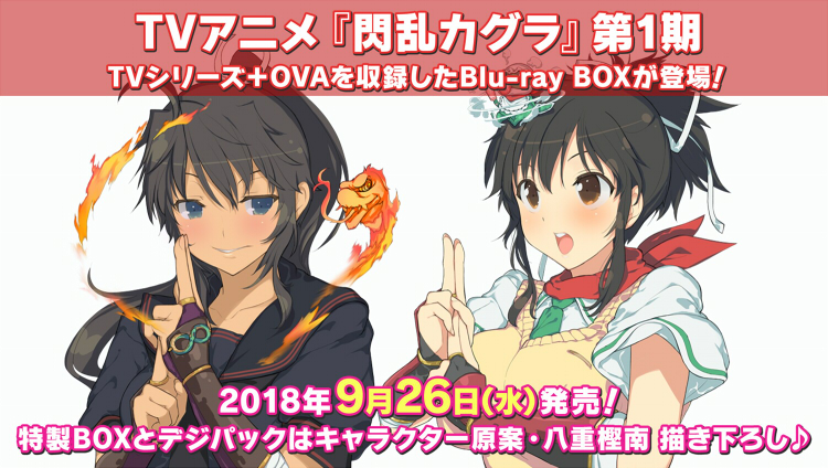 第1期Blu-ray BOXが9月26日に発売される。Blu-ray BOXにはテレビシリーズ全12話に加え、2015年に発売されたOVA『閃乱カグラESTIVAL VERSUS -水着だらけの前夜祭-』を収録。BOXとデジパックはキャラクター原案・八重樫南さんによる描き下ろしだ。