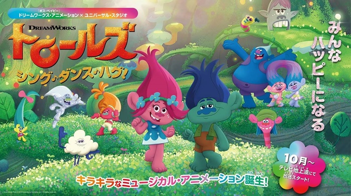 TVアニメーション・シリーズ ドリームワークス『トロールズ:シング・ダンス・ハグ!』のTV放送が決定。NBCユニバーサル・ジャパンのTV配給により、10月からテレビ東京系列で放送スタート。
