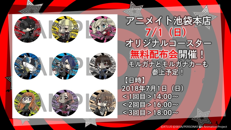 アニメイト池袋本店にて、オリジナルコースターの店頭配布が決定した。明智を加えた全9種がランダムで配布される。モルガナとモルガナカーも参上予定!