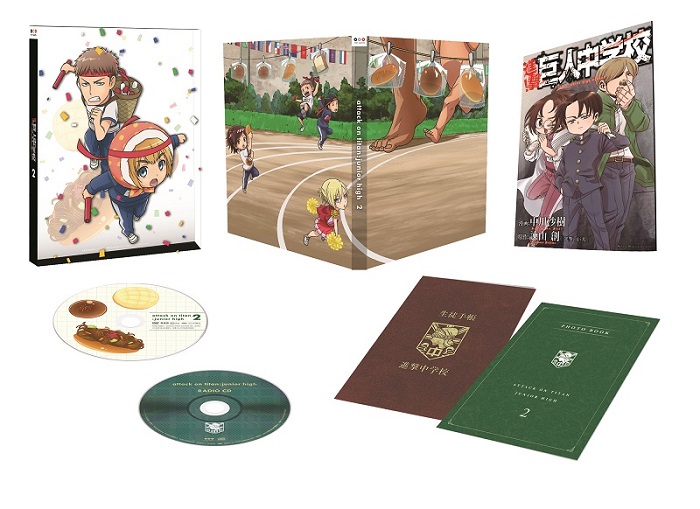 『進撃!巨人中学校』より、Blu-ray&DVDの第2巻が本日(2016年2月17日)発売された。第2巻には第5話『猛勉!巨人中学校』から第8話『怪談!巨人中学校』までの4話が収録されている。