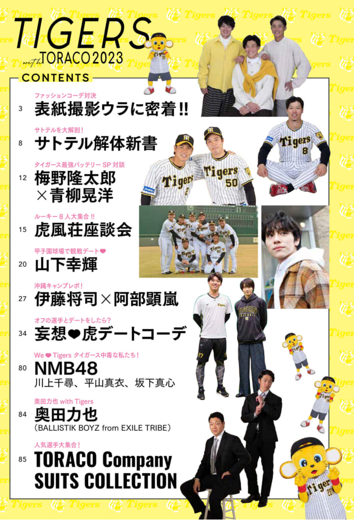 TORACOのための阪神タイガースファンブックが登場! 表紙はファン感謝デー2022のコーデバトルでセンターに決定した湯浅選手、中野選手、熊谷選手が飾ります♪ 人気選手の撮りおろしデート、スーツ姿のグラビアやファン必見の選手対談を収録。裏表紙はドラマ『君の花になる』で8LOOMのメンバーとして期間限定で活動していた、人気若手俳優の山下幸輝さんが飾ります! ほか人気アーティストのインタビューやグラビアも掲載予定! TORACOの方もTORACOでない方も阪神タイガースも魅力にたっぷり浸ることができる1冊です。