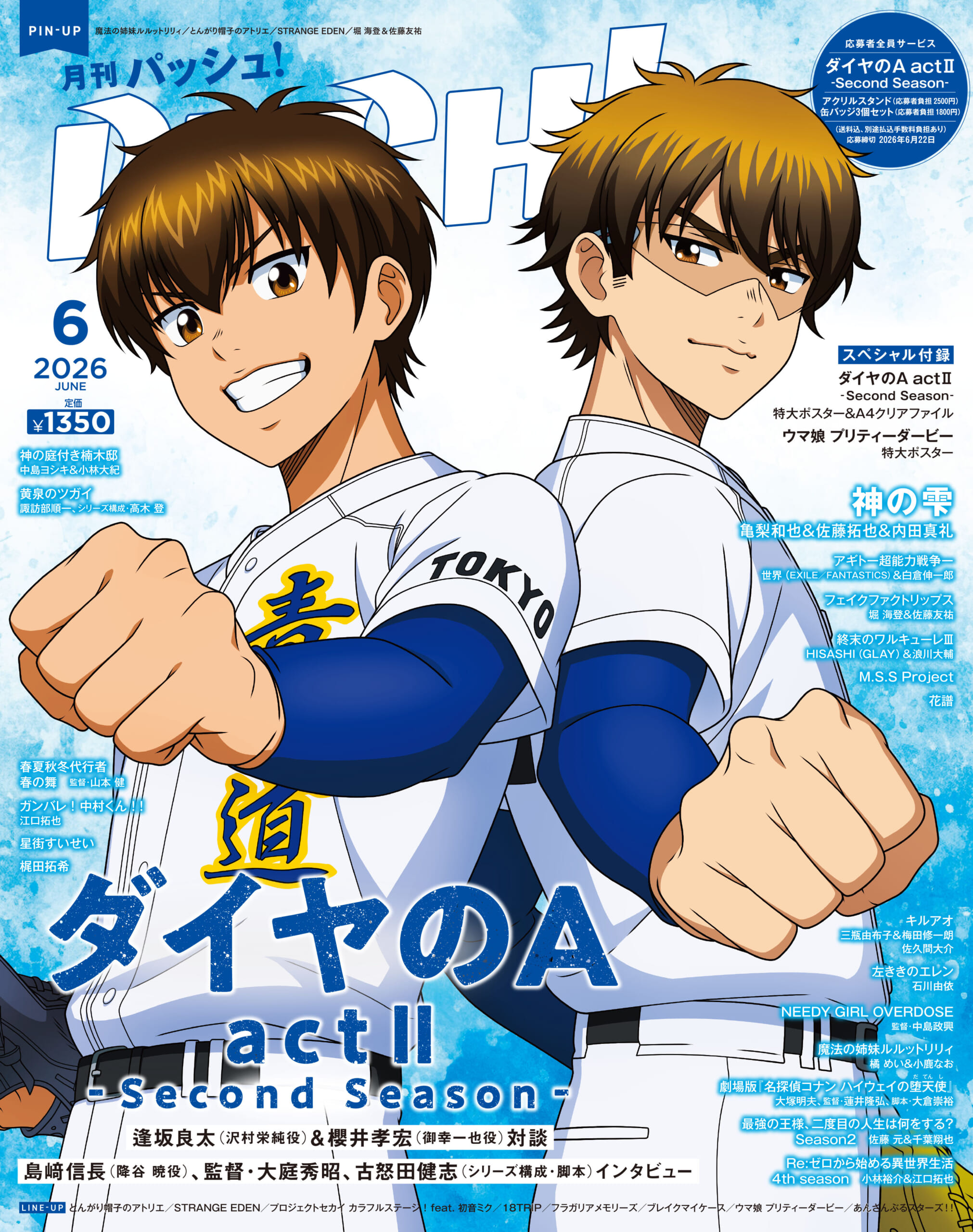 5月9日(土)発売のPASH! 6月号の表紙は、『ダイヤのA actⅡ-Second Season-』と『神の雫』