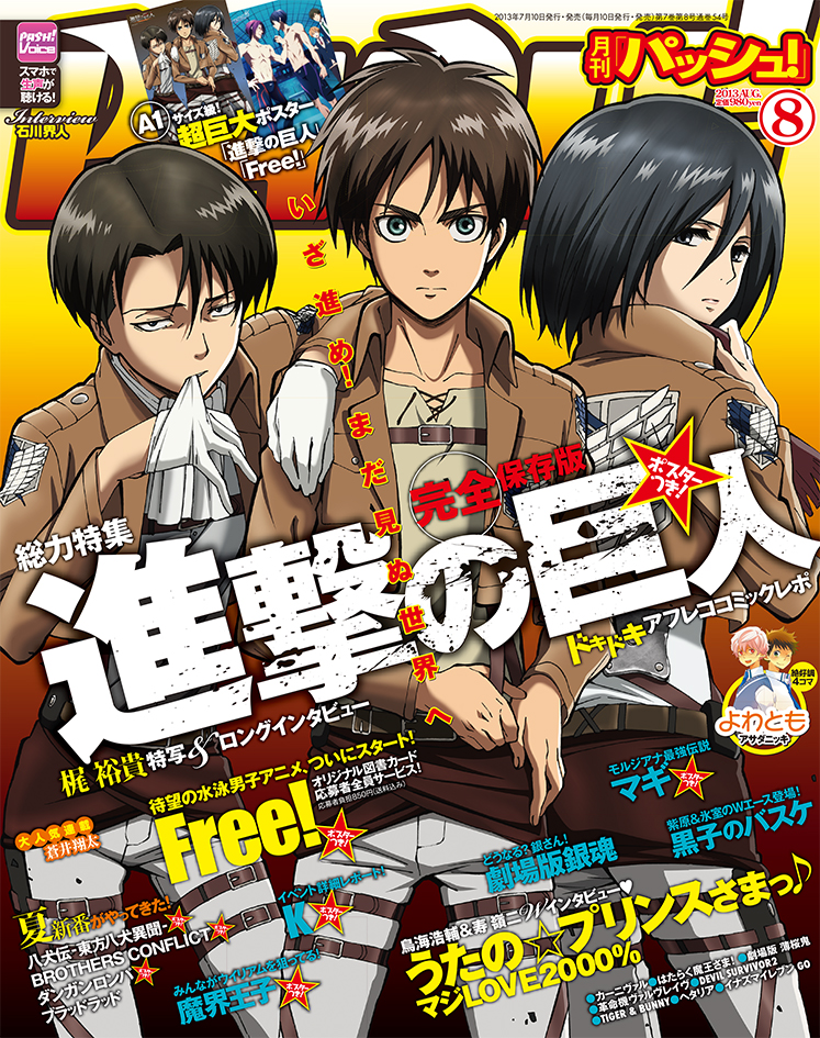 PASH!2013年8月号 表紙は『進撃の巨人』。本誌初の重版を記録。