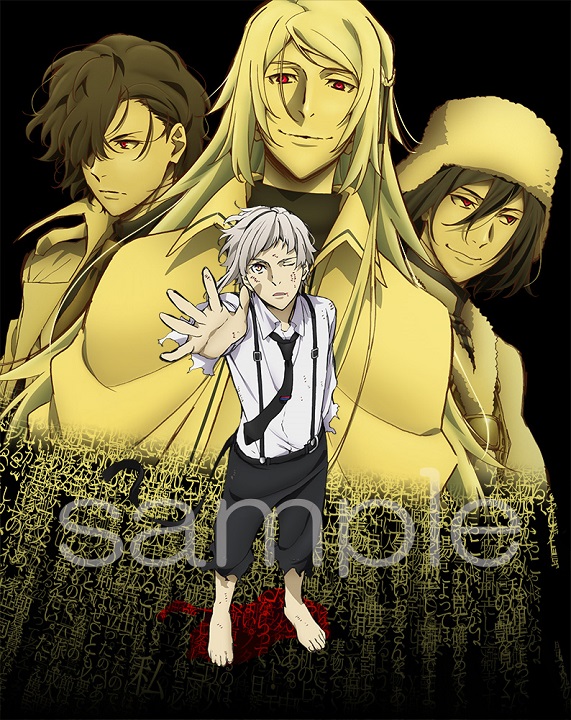今回、11月28日に発売となるBlu-ray&DVDのジャケット画像が完成。手を伸ばす中島 敦と背後に立つ太宰 治、澁澤龍彦、フョード ル・Dの対比が印象的なイラストだ。