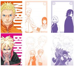 ナルトたち親世代とボルトたち子供世代に分かれたメモ帳セット。絵柄は全4種ずつ。