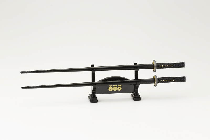 本商品は、現存する刀はそれをもとに、現存しないものは言い伝えからイメージし、柄、鍔つば、刀身と細部までこだわってデザインされた箸だ。真田幸村や土方歳三の刀などが再現されており、また武将に関連する家紋が入った刀掛台型箸置きも付属している。