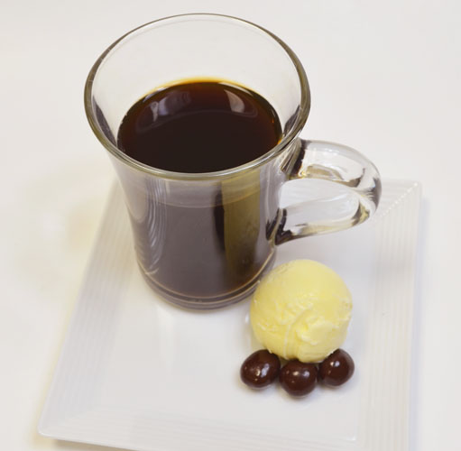 「どうしたら君の心に入れるんだろう。」大地のアイスコーヒー コーヒービーンズチョコレート添え 価格:500円(税込)