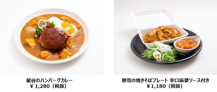 コラボカフェは、学園祭をテーマにした描き下ろしを使用し、東京・大阪、2都市で開催。各キャラをイメージして作られたメニューや描き下ろしを使用したグッズが登場するほか、各キャラと一緒に学園祭に来ているような感覚に浸れる楽しさを演出した店内装飾となっている。