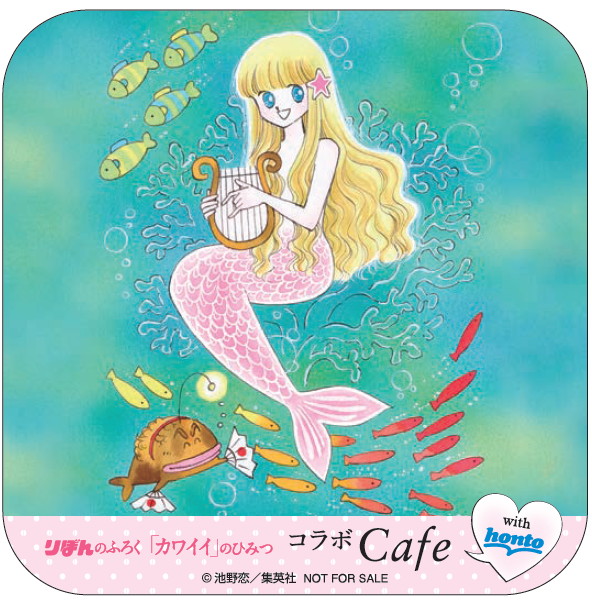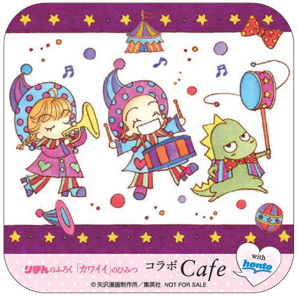本カフェは、集英社の少女まんが誌『りぼん』の“ふろく”にスポットをあてたムック『りぼんのふろく「カワイイ」のひみつ』がハイブリッド型総合書店“honto”とコラボレーションし開催。カフェ内では“りぼんマスコットコミックス”でお馴染みの“りぼんちゃん”マークをモチーフに矢沢あいさんが描き下ろしたイラストがラテアートになって登場。イベント限定のコースターが特典として数量限定でプレゼントされる。コースターにはさくらももこさんをはじめとした6人の人気作家のふろくイラストが復刻!