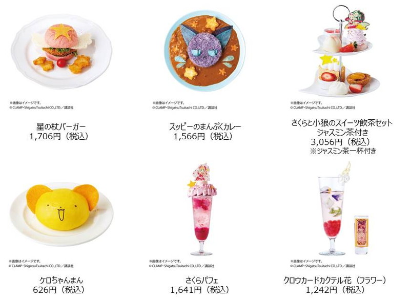 10月26日からの会期中、“SAKURA Cafe&Parlor(さくらカフェ&パーラー)”では、“星の杖バーガー”や“スッピーのまんぷくカレー”など人気キャラクターをモチーフにしたオリジナルメニューや、作中に登場するカードをモチーフにしたノンアルコールカクテルなどが販売される。