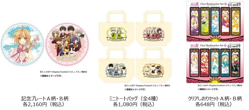 本展のメインビジュアルや描きおろしのちびキャラがデザインされた記念プレートやちょっとしたおでかけにぴったりのミニトートバック、さらに、原作のイラストを使用したカード風デザインのクリアしおりセットなどが登場。“カードキャプターさくら展”オリジナルグッズは会場内の“カードキャプターさくら展 ミュージアムショップ”にて販売される。