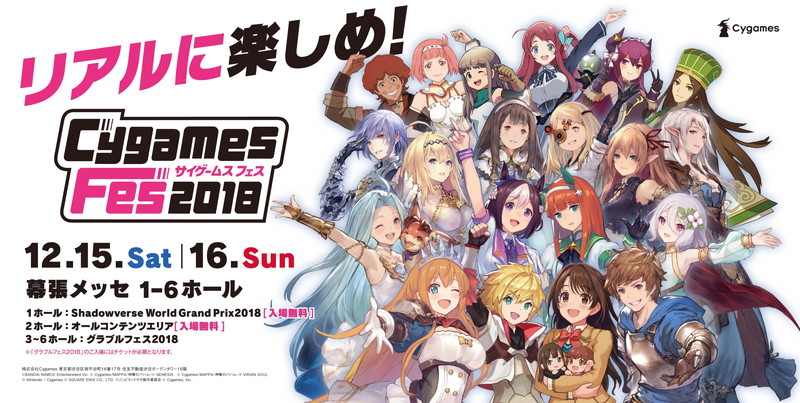 Cygames(サイゲームス)は、12月15日(土)・16日(日)に大型リアルイベント“CygamesFes2018”を幕張メッセにて開催する。