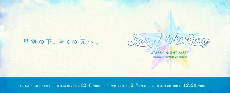 『スタンドマイヒーローズ』の期間限定コラボカフェ“Starry Night Party Produced by STAND MY HEROES”が、12月6日から2019年1月19日まで、東京2店舗および大阪1店舗の計3店舗で開催される。