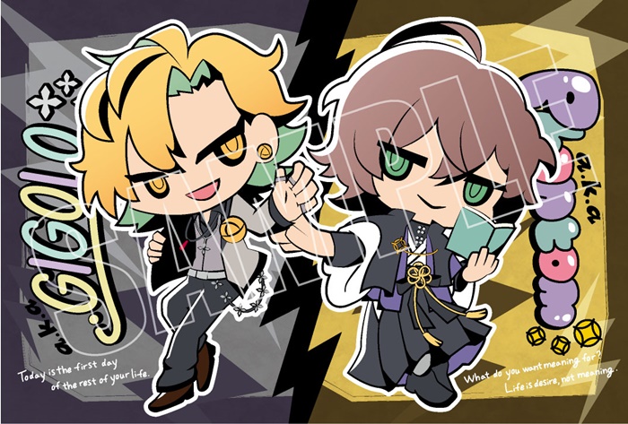 AGF2018にて先行販売となった商品を含む11アイテムが対象となる本フェアでは、購入1,000円毎に特典の“ポストカード(全6種)”がランダムで1枚手に入る。ポストカードは、それぞれ“Buster Bros!!! VS MAD TRIGGER CREW”、“Fling Posse VS 麻天狼”の組み合わせが印象的なデザイン。