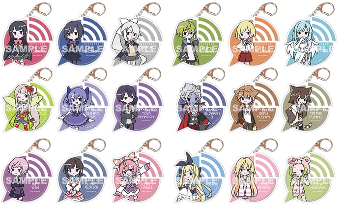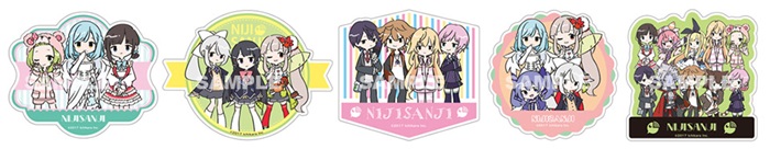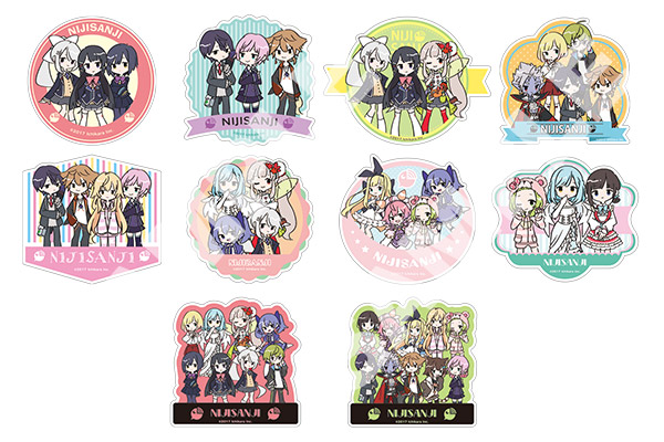 絵柄(全18種):月ノ美兎、静凛、樋口楓、渋谷ハジメ、鈴谷アキ、モイラ、える、勇気ちひろ、剣持刀也、ギルザレンIII世、伏見ガク、文野環(野良猫)、夕陽リリ、鈴鹿詩子、宇志海いちご、物述有栖、家長むぎ、森中花咲