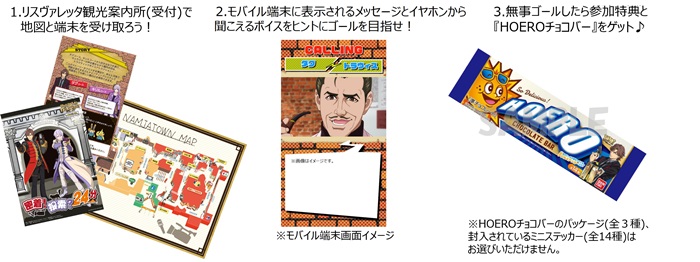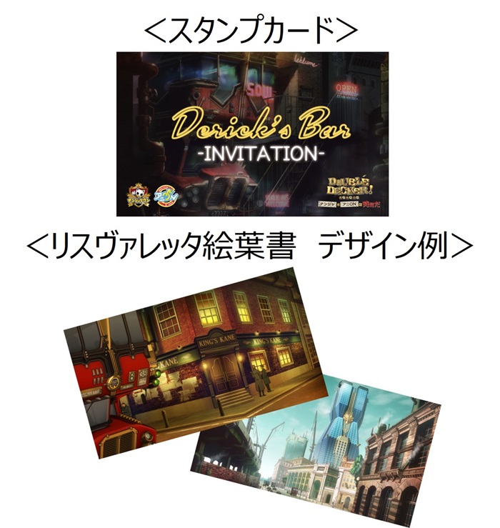 ナンジャタウンでボイスアトラクション“密着!捜索?24分”利用時に、作中に登場する“Derick’s Bar(デリックズバー)”への招待券をイメージしたスタンプカード“Derick’s Bar –INVITATION-”1枚配布される。スタンプカードには2つのスタンプ枠があり、ボイスアトラクション1回のご利用につき1つスタンプが押される。スタンプがすべてたまったスタンプカードを2019年1月23日(水)よりアニONSTATIONで開催されるイベント“Derick´s Bar in アニON STATION”に持参すると、“リスヴァレッタ絵葉書”1枚もらえる。