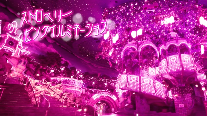 ピューロビレッジがピンク色に染まる“ストロベリーピンクイルミネーション”