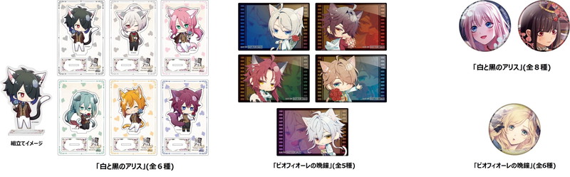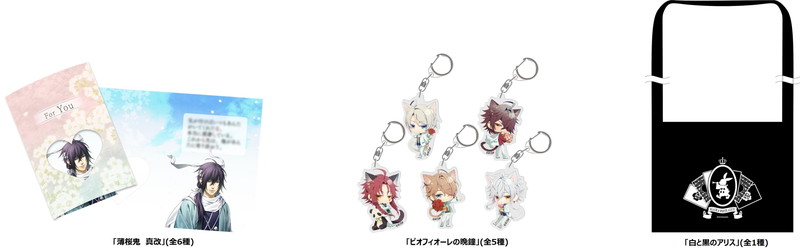 『薄桜鬼 真改』、『Collar×Malice』、『白と黒のアリス』、『ピオフィオーレの晩鐘』、『Cendrillon palikA』のオリジナルグッズが販売される。