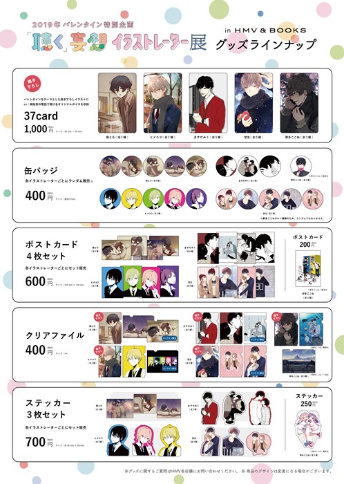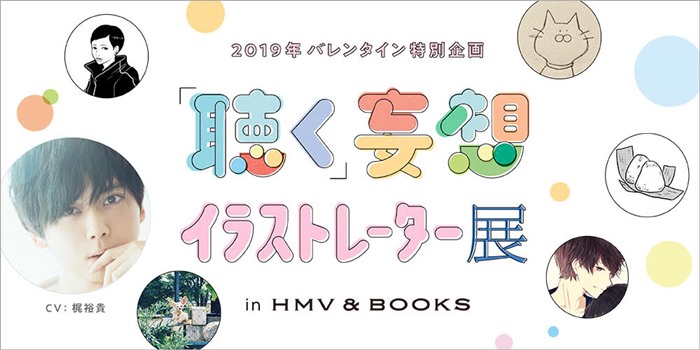HMV&BOOKS SHIBUYA、SHINSAIBASHIの2店舗でイラストレーター5名と声優・梶 裕貴さんのコラボバレンタイン企画展が開催される。