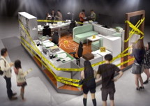 『名探偵コナン 科学捜査展~真実への推理(アブダクション)~』は、証拠を採取する“現場検証エリア”、コナンの仲間達から新たな情報を収集する“聞き込みエリア”、証拠を科学的に鑑定する“ラボエリア”の3つのエリアから解明していくという参加型の企画展。