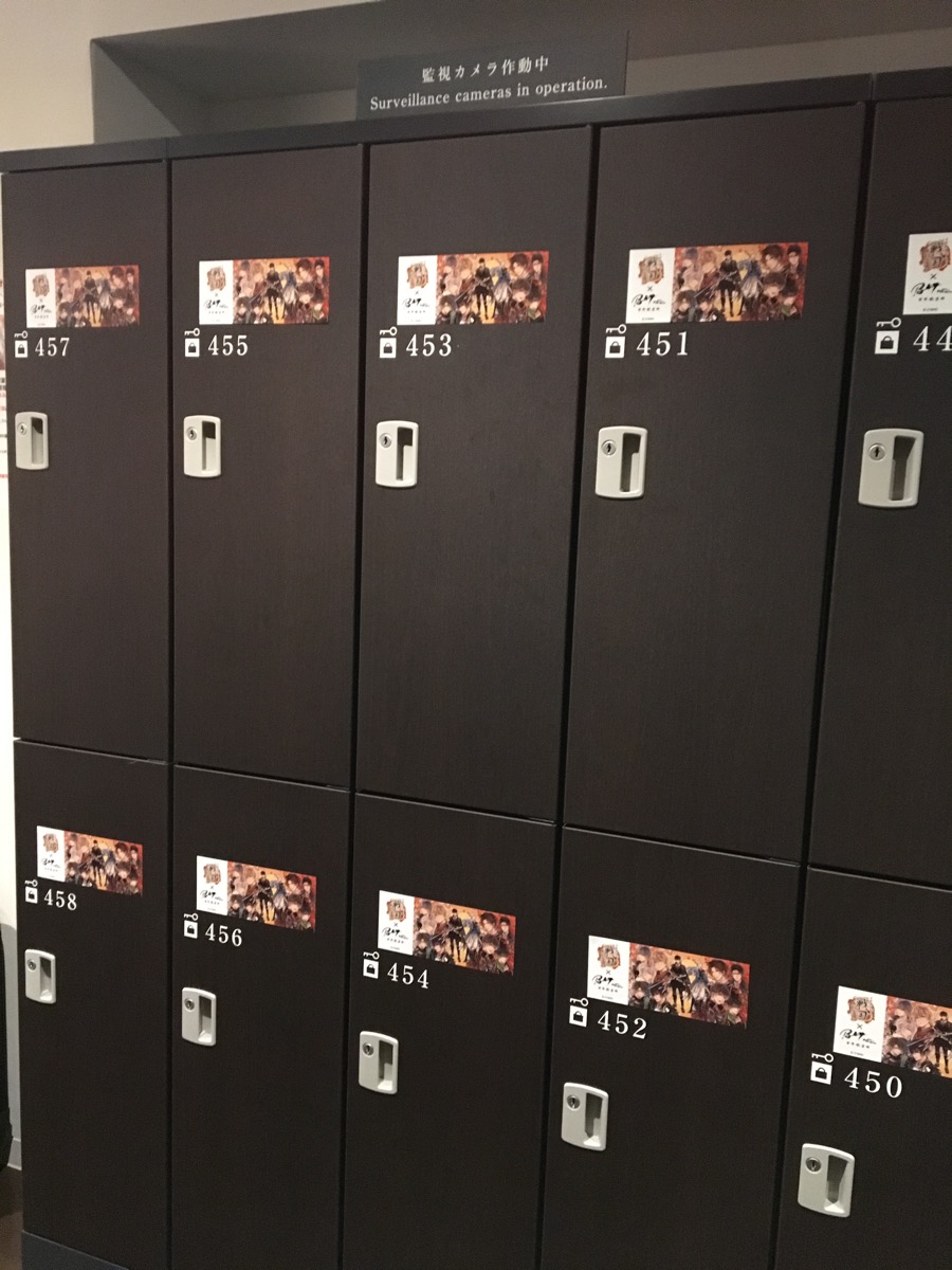 ロッカールームにはステッカーが。「上杉謙信がどこかのロッカーに置き忘れた一升瓶」を運良く見つけられた人は、「コラボ企画特製ICカードステッカー」をゲットできるスペシャルプレゼントも実施中! ドキドキしながらロッカーを開けたら、荷物を預けてユニット(部屋)に移動します!