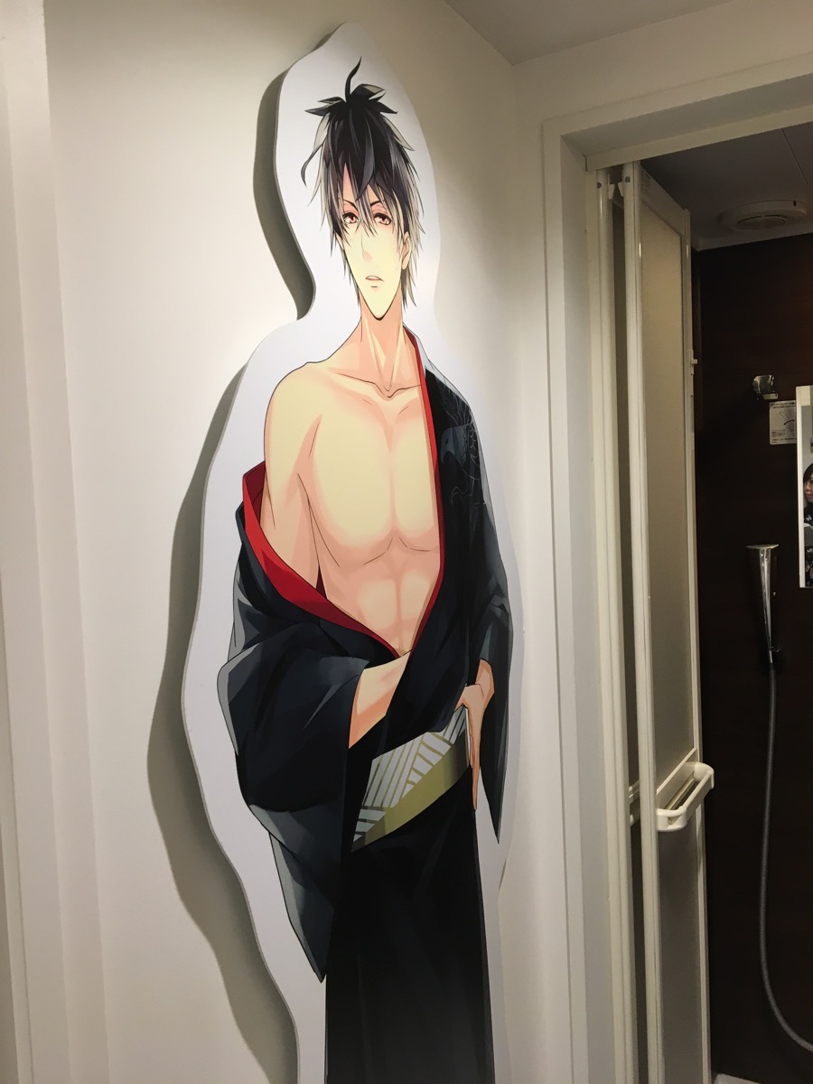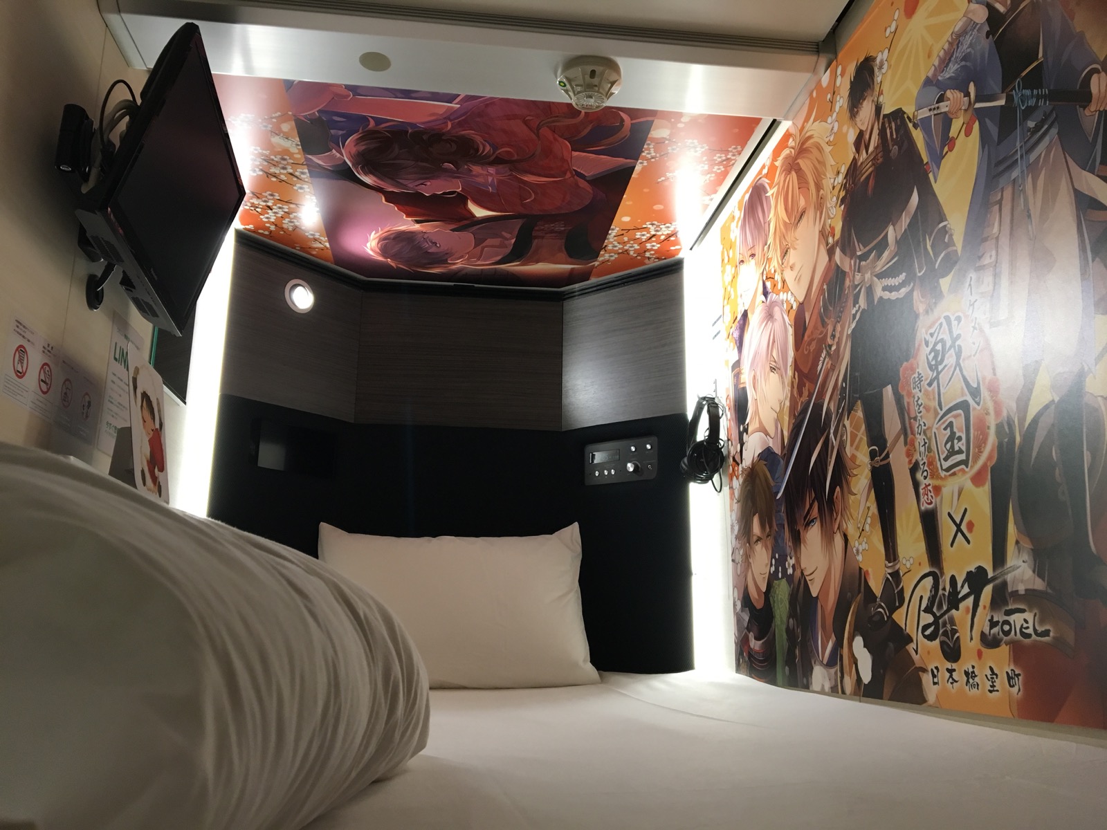ユニットを覗くと、側面にはメインビジュアルが。枕元にあるSDキャラのスタンド、天井のスチルは部屋ごとに違う!th_IMG_8670