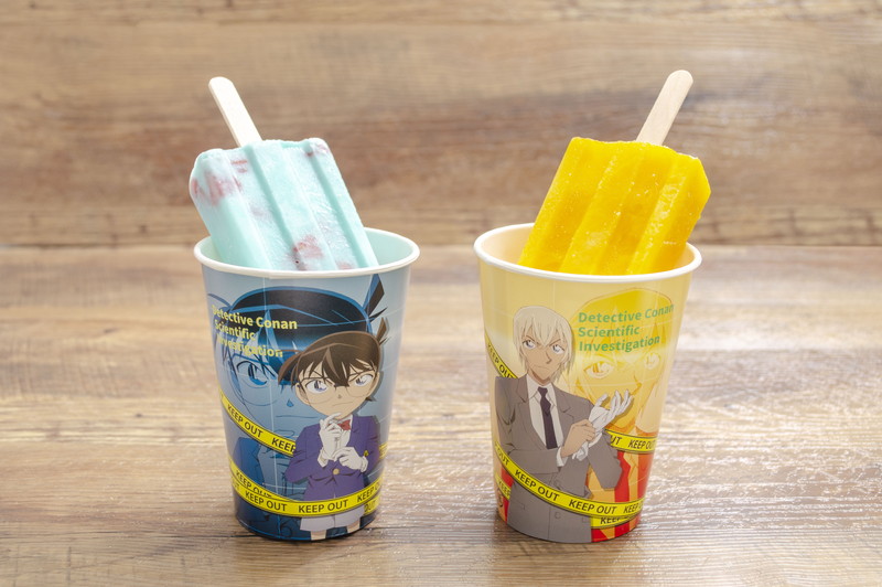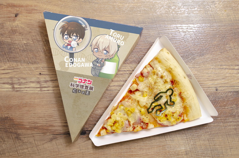 被害者のシルエット型のカット海苔がのった“現場検証ピザ”や、キャラクターをイメージしたカラーの“アイスキャンディー”の他、“薬瓶ドリンク”や“アポトキシン ポップコーン”など、科学捜査展らしさ満載のここだけの限定メニューが多数登場。