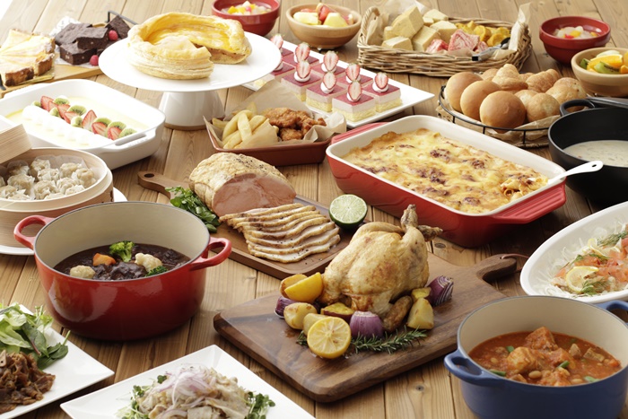 食事は、さまざまな料理をお腹いっぱいに楽しんでいただくため、これまで通りビュッフェスタイルで提供。特製ローストチキン、特製ローストポーク、自家製牛タンシチューなど、目玉であるお肉料理を含む40種類のメニューで、子供も大人も嬉しい内容となってる。