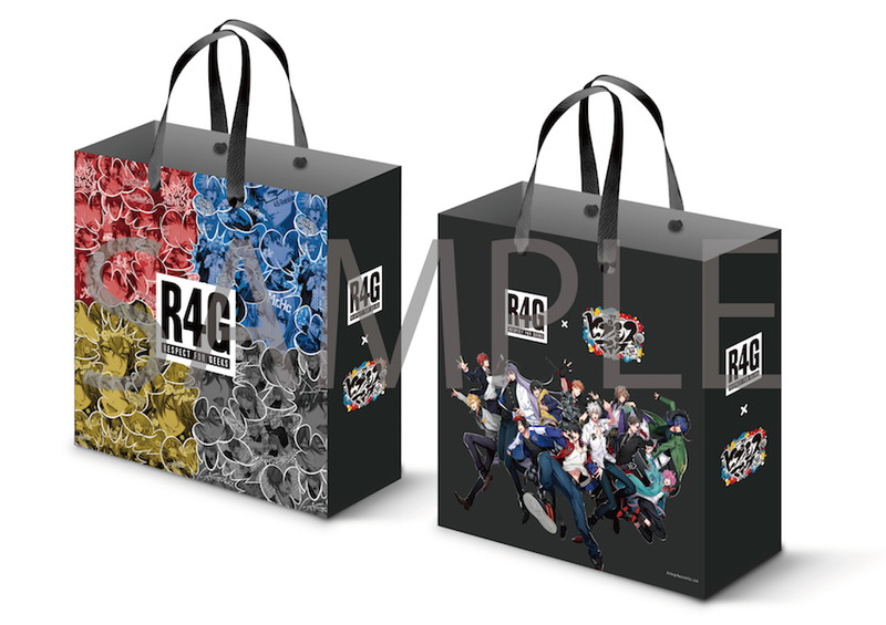 オリジナルのタギング柄を使用したロングTシャツやパターン柄のサコッシュなどの販売に加え、R4G×ヒプノシスマイク描き下ろしデフォルメイラストを使用したアクリルキーホルダーや缶バッジも販売される。このデフォルメイラストはR4Gだけでの取り扱いとなる。