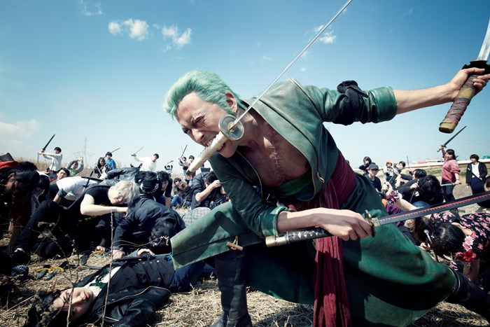 3月都内で開催された、特別な仕事“ゾロ 斬られ役”には、“採用“された104名が、ゾロ役の池内博之さんの繰り出す技を受けるという“斬られ役”のアルバイトとして参加した。