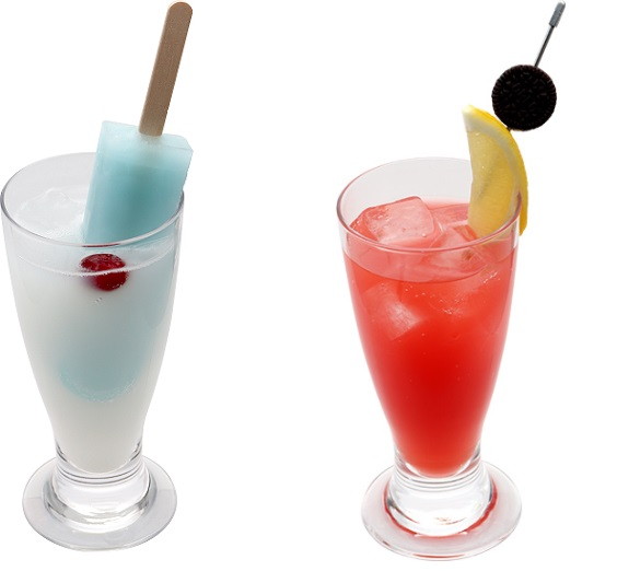 綾波ソーダサワー/式波トマトサワー/セカンドインパクトワイン/ Mark.06 グラスワイン/ L.C.L(ノンアルコール)/ ミント・カヲルモヒート(ノンアルコール)/ 初号機ドリンク(ノンアルコール)各390円