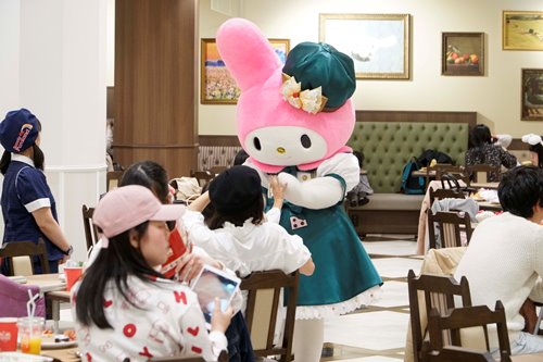 イベントでは、館のレストラン限定となるオリジナルコスチュームを着たハローキティ、ディアダニエル、シナモロール、マイメロディ、ポムポムプリン、ウィッシュミーメルが登場し、各キャラクター、コスチュームの“かわいい”ポイントを紹介。その後、ハローキティ、ディアダニエル、マイメロディ、ウィッシュミーメルがお客様のおもてなしのためテーブルまでご挨拶へ向かうと、招かれたピューロアンバサダーからは「かわいい!」と歓声が上がった。キャラクターとハイタッチしたり、ハグするなど思い思いにキャラクターとの時間を楽しんでいた。