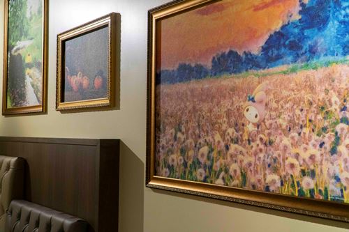 レストランの壁に飾られている名画の数々。よく見るとキャラクターが…。