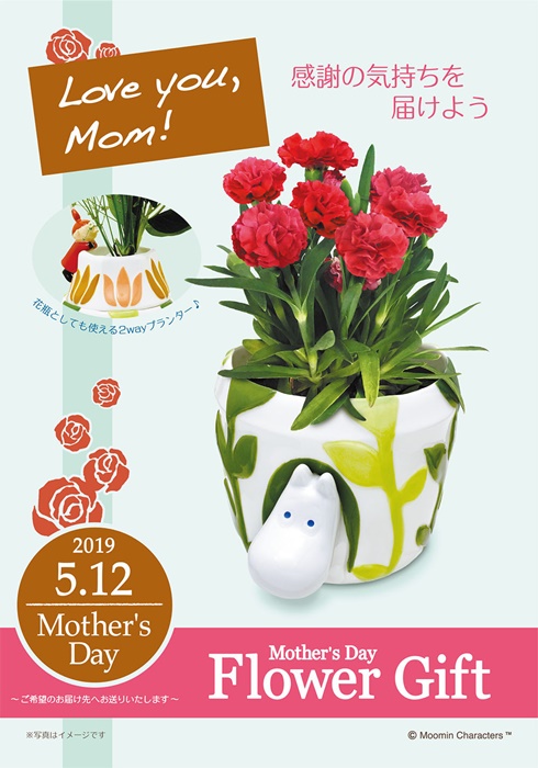 また、5月12日の母の日に向けてカーネーションの配送フラワーギフトの受付や、スイーツギフトとして、ムーミンママとバラが描かれたバウムクーヘンなどが登場。