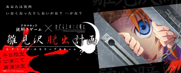 『ひぐらしのなく頃に』の世界観を体感できるイベントとして作られた体感型謎解きゲーム“雛見沢脱出計画-ヒナミザワ・エスケープスキーム-”。昨年2018年4月から7月頭まで多くのプレイヤーが参加した本公演が1年立ち再演が決定した。