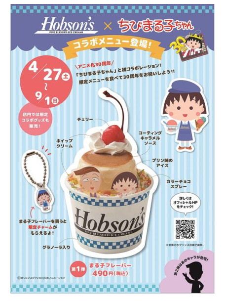 TVアニメ『ちびまる子ちゃん』とアイスクリーム専門店“ホブソンズ”とのコラボレーションメニューとして、7月1日より花輪クンをイメージしたアイスクリームが登場する。