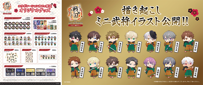 また、このコラボのために描き下ろされた“ミニ武将イラスト”を使用したオリジナルグッズも多数発売!このミニ武将グッズをゲットできるのはこのコラボだけですので、お見逃しなく。