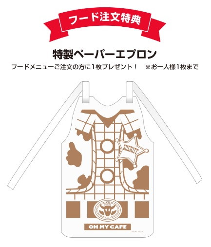 おなじみの仲間たちや、今作初登場の新キャラクターで公開前から注目されているフォーキーやダッキー&バニーをモチーフにしたメニューが登場する他、『トイ・ストーリー4』のアートを使用した限定グッズが先行販売される。また、“入場バンド”やウッディの服の絵柄“特製ペーパーエプロン”がもらえる特典など盛りだくさんな内容でスペシャルカフェを盛り上げる。