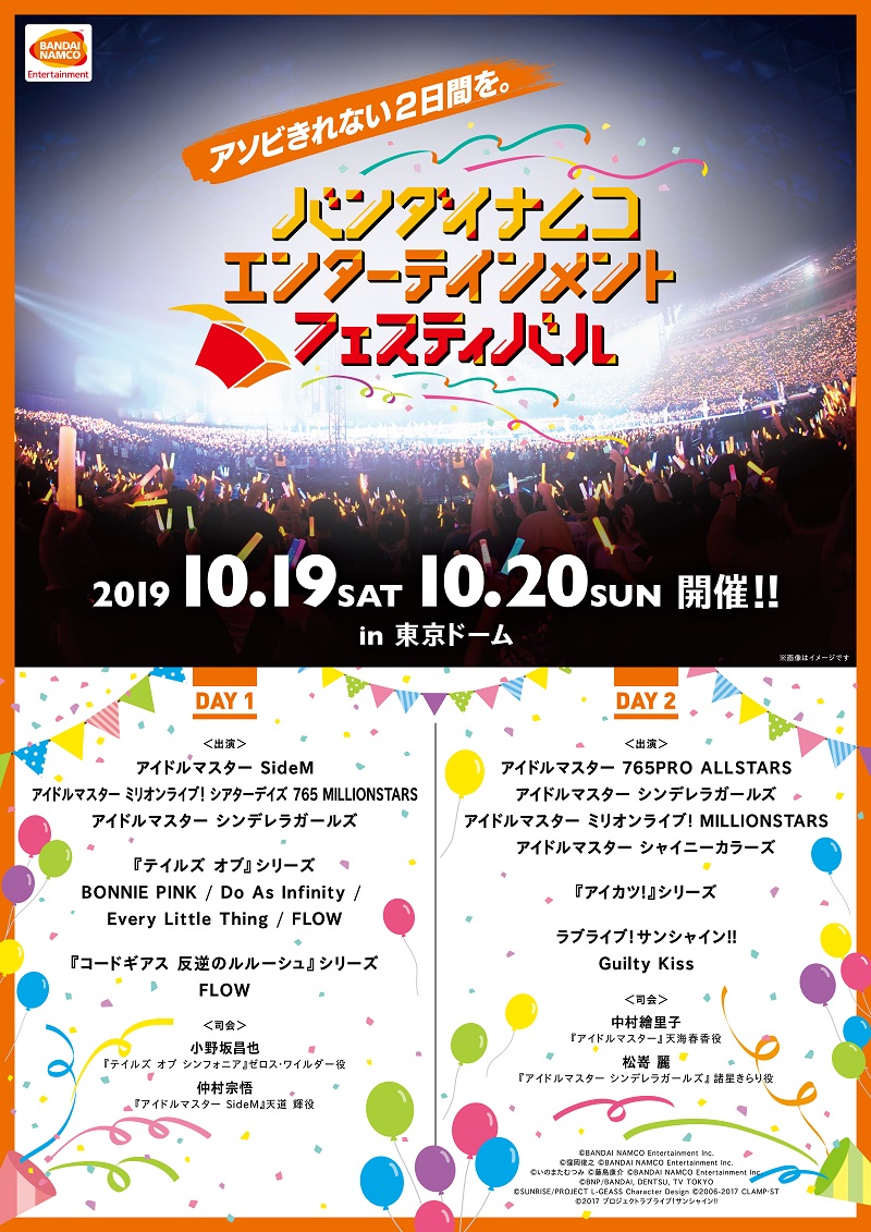 タイトルの垣根を超えたバンダイナムコエンターテインメント初のエンターテインメントライブ“バンダイナムコエンターテインメントフェスティバル”が、10月19日、10月20日の両日、東京ドームで開催される。