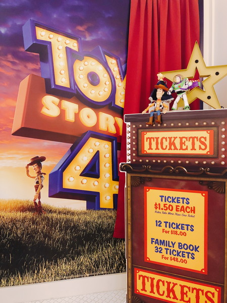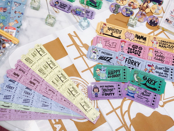 エントランスではウッディや『トイ・ストーリー』に登場する仲間たちがお出迎え! 移動遊園地がテーマとなっている店内にはチケット売り場のような演出が。店内にも『トイ・ストーリー』にちなんだ展示がされており、ファンにはたまらない空間に。