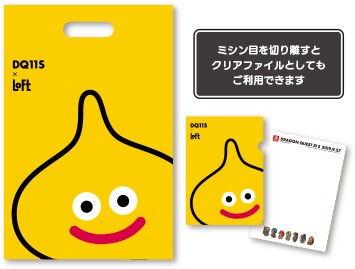ドラゴンクエスト関連商品を税込み1,080円以上購入すると、(1)ドラゴンクエスト×ロフト コラボデザイン クリアファイルバッグ(2)『ドラゴンクエストXI 過ぎ去りし時を求めて S』の小冊子、“THE SPECIAL STARTING BOOK”がもらえる。※ネットストアを除く。なくなり次第終了。