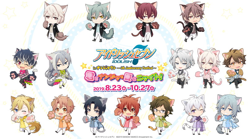 ナンジャタウン(東京・池袋)にて、アプリゲーム『アイドリッシュセブン』の4周年を記念して、コラボイベント“アイドリッシュセブン in ナンジャタウン ~4th Anniversary Festival~ 君とナンジャで愛なニャイト!”が8月23日から10月27日まで開催される。
